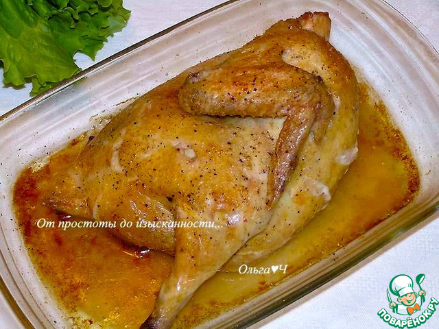 Этот рецепт - моя палочка-выручалочка, особенно в праздничные дни. Ни для кого не секрет, что в праздник времени катастрофически не хватает ни на что. А ведь от вас на праздничный стол ждут как минимум шедевра, а надо и салатики настругать, и себя, красавицу, в порядок привести. Что же делать? Вот он, мой рецепт - легко и перед гостями поставить не стыдно. Курочка получается очень вкусной, сочной. Конечно, на звание полезного и правильного питания она претендовать не может, но на то и праздник, что мы можем позволить себе немного расслабиться и съесть что нибудь не очень полезное, зато чертовски вкусное. Надеюсь, мой рецепт вам понравится.