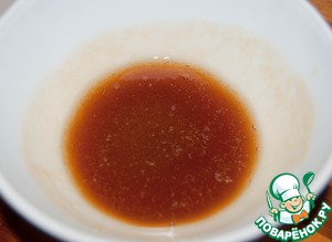 К растопленному меду я добавляю точно такое же количество соевого соуса и перемешиваю. -
