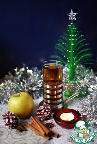 Все очень просто. Смешать воду и яблочный сок со специями. Довести до кипения, уменьшить огонь и варить 10 мин.