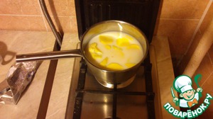 2. Залейте картофель молоком, доведите до кипения на среднем огне. После закипания варите 8 минут.