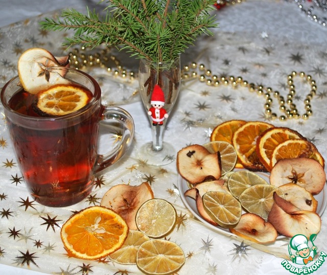Замечательный рецепт чая. Хорошо согреет в морозный день. Фруктовые чипсы очень необычны, полезны и вкусны. Готовить их надо заранее, так как их приготовление занимает порядка 2 -х часов.