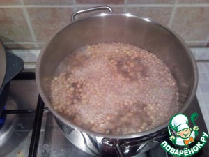 Замоченную на 30 минут чечевицу (стакан - 250 гр) ставим варить в небольшом кол-ве воды (1 литр).