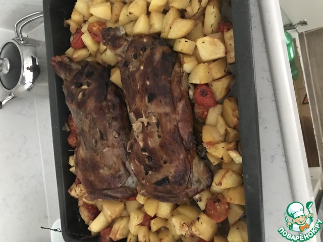 Вынимаем наше мясо и подаем с гарниром из картофеля, который я приготовила по одному из ваших рецептов "Картофель, запеченный в чесночном масле с розмарином". Баранина получилось очень мягкая, пряная и ароматная. Гости оценили на отлично и ни кусочка не оставили.