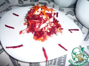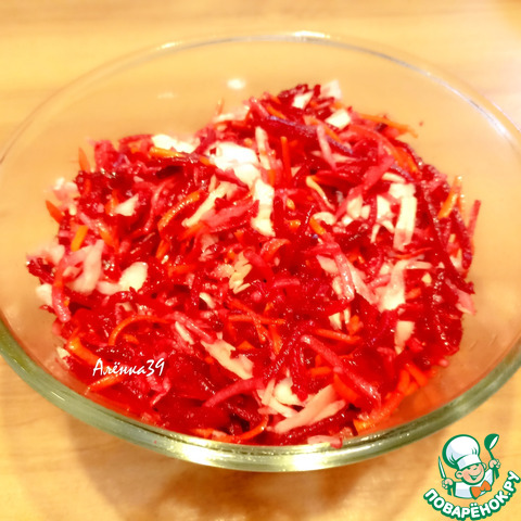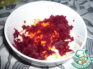 Свеклу тоже натереть на крупной терке, переложить в миску.