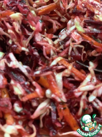 Капусту нашинковать, перетереть с солью, чтобы дала сок.