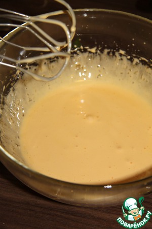 В это же время взбиваем желтки с оставшимся сахаром (около 30гр.). Нужно, чтобы масса стала светлой.