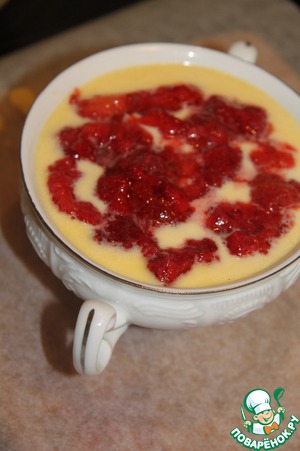 Возьмем креманку, у меня такой не нашлось, зато была небольшая суповая чашка, в которую я и выложила наш крем, протерев его через сито для нежности.
