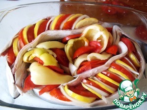 Рядом можно уложить нарезанный сладкий перец или любые другие овощи, тут можно импровизировать, получится все равно вкусно, доминирует лимон.