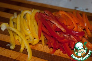 - Перец болгарский (красный, оранжевый, желтый - цвет не принципиален) — 3 шт