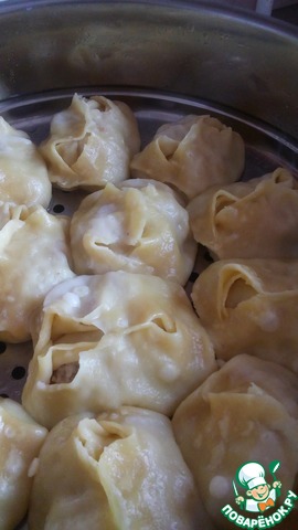 Листы мантоварки смазываем маслом и выкладываем на них манты, не плотно друг другу. Ставим в на огонь, минут на 20-30. Все, готово!