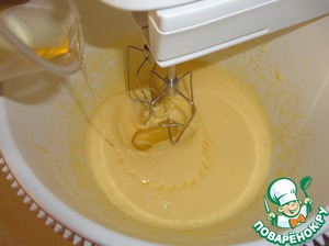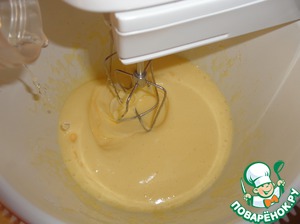 Не останавливая миксер, добавляем постепенно смесь с мукой.