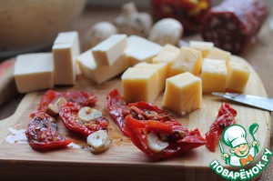 Вяленые томаты (я делаю их сама, в сезон помидоров) мелко нарезать.