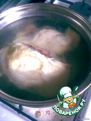 Курицу ( я для пиццы беру суповой набор) отварить в специях (чесночная соль, карри, душистый перец, лаврушка, гвоздика).