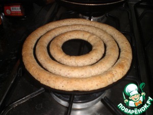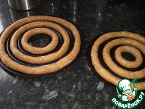 Выкладываем наши колбаски в формы. Или же по нарисованным заранее кругам.