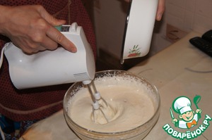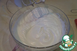 Белки взбить до крепких пиков с оставшимся сахаром.