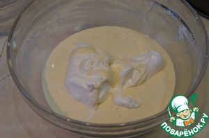 Последнюю треть белков добавить к тесту и аккуратно вмешать методом складывания.