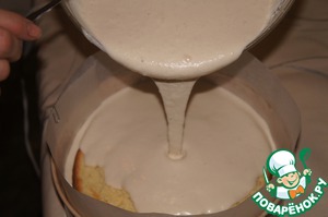 Крем аккуратно вылить на бисквит и убрать в холодильник на 3-4 часа.