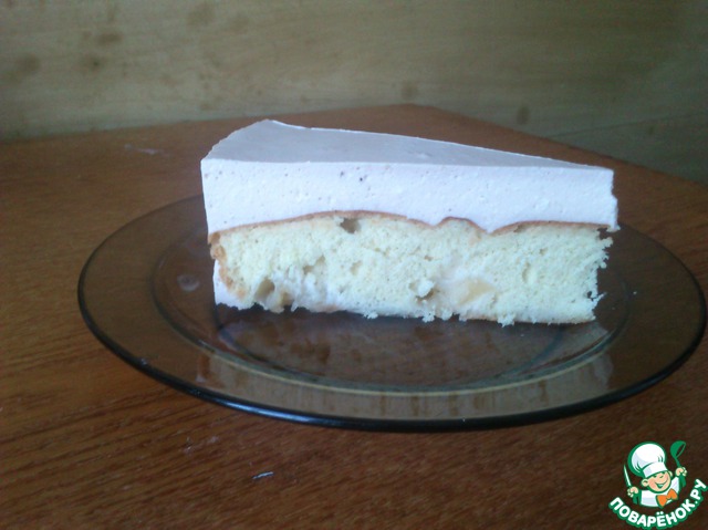 Отчитываюсь. Немного отступила от рецепта - разрезала готовый бисквит вдоль на две части и собирала так: нижний слой - бисквит яблоками вверх + дополнительно промазан яблочным пюре собственного изготовления, слой крема, далее опять бисквит , прмазанный яблочным пюре, потом опять крем, га наш. Крем - замечательный! Только чуть густоват получился, в следующий раз желатина меньше положу.