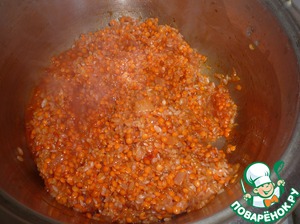 Добавить промытые крупы (рис, чечевицу и булгур). Перемешать