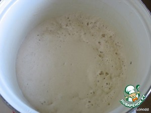 Добавить 1 стакан просеянной муки. Поставить в теплое место для появления шапочки.