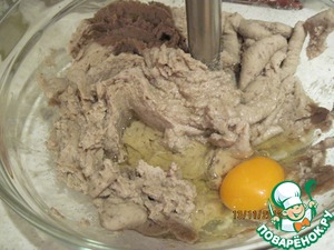 • Самые красивые фасолинки (их понадобится с полстакана-стакан) откладываем, а остальную фасоль хорошо сцеживаем (вода нам не нужна) и пюрируем блендером, добавляем яйцо, муку и обжаренный чесночок.