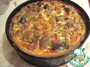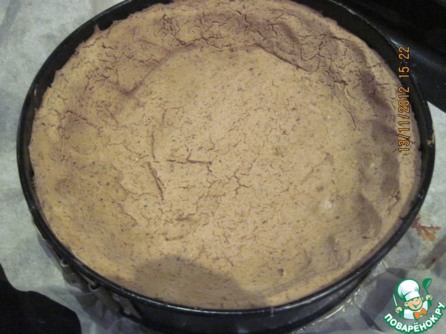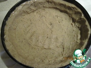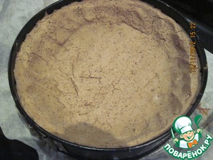 • Форму смазываем маслом, дно выстилаем бумагой, размазываем (по другому и не скажешь) фасолевое "тесто" по форме, формируем бортики. Все отлично получается ложкой, разве что бортик лучше подправить рукой.