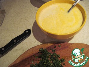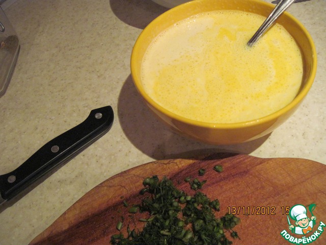 • Отдельно слегка взбиваем яйца с солью, добавляем сливки.
