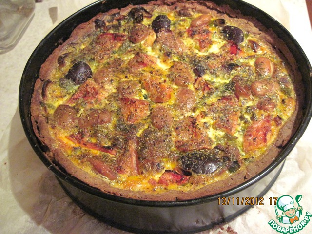 Катюш Привет! Приготовила твой пирог! Начинка у меня чуть другая. С беконом, овощими и сыром! Конечно получилось божественно вкусно!