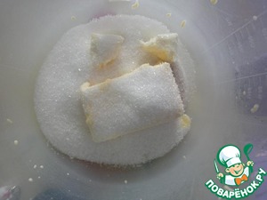 Разогреваем духовку до 180 градусов. Сливочное масло взбиваем с сахаром.