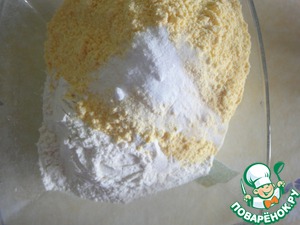 В отдельной миске смешиваем два вида муки, соду и соль.