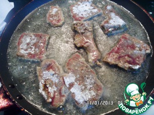 Масло разогреть до белого дымка. Обжариваем небольшими порциями, чтобы масло не остывало.