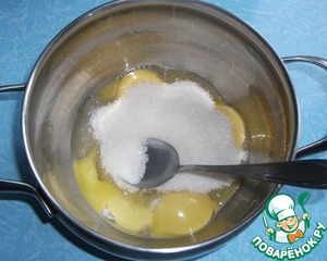 Желтки растереть с сахаром. По оригинальному рецепту 5 шт, я использовала 4 шт, т. к. яйца были крупные.