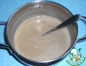 И соединить с желтками. Прогреть смесь до густоты сметаны на водяной бане, ввести набухший желатин и прогреть смесь до его растворения.