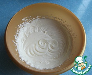 Сливки взбить в устойчивую пену и соединить с яично-молочной смесью.