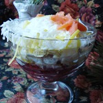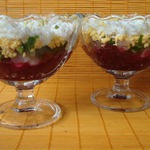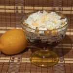 Предварительно на бокал или креманку по краю наносим цедру лимона (это обязательно, так как цедра даст нотку в салате!). Я это делала при помощи кисточки, смоченной в воде.