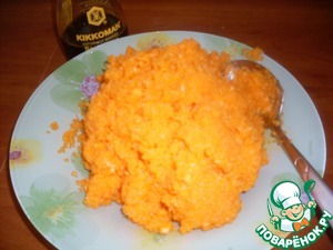 • Тыкву натираем на терке или в измельчителе. Немного присаливаем, добавляем яйцо и натертый сыр. Все перемешиваем.