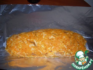 • Плотно заворачиваем рулет в фольгу и ставим в духовку на 180С на 20 минут. Потом открываем фольгу и печем еще 15 минут.