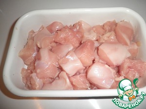 3. Куриную грудку разделываем, нарезаем небольшими кусочками.