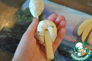 Формируем шарики и в серединку вкладываем нашу палочку.