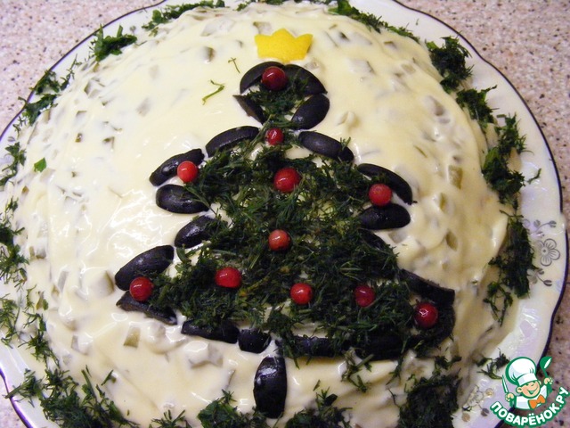 Рецепт «Варианты новогоднего оформления салата "Мимоза"»: