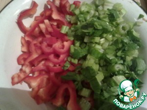 • Пока картошка варится, нарезаем перец и сельдерей.