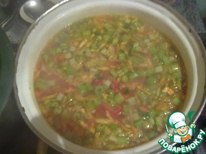 • Когда картошка будет почти готова, кладем туда пассерованные овощи, перец, сельдерей и фасоль. Я положила пол банки.