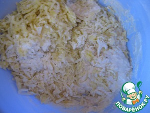 5. Добавляем натертую картошку, хорошо смешиваем.