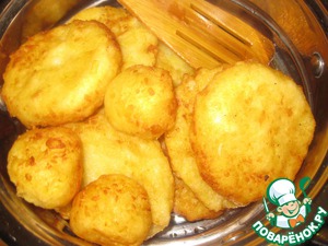 Лангоши... так венгры называют пышные лепешки из дрожжевого теста, обжаренные в кипящем растительном масле. Лангоши (дословно "пламенные") едят немедля - с пылу с жару! Свеженькие лангоши смазывают чесночным соусом и посыпают тертым сыром! Лангоши подходят к первым блюдам.