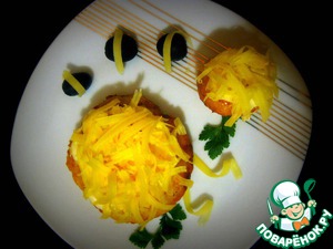 12. Верх смажем майонезом, кто любит - подавленный чеснок, а сверху - тертый сыр.