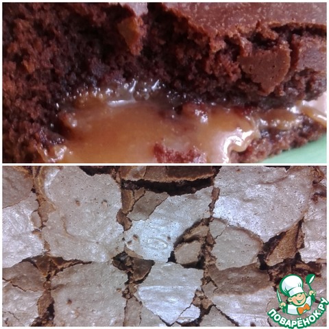 Потрясающе вкусный десерт! Очень шоколадный, очень нежный. Сверху-хрупкая корочка, внутри - мягкий, влажный, с мягкой карамельной прослойкой. Из доступных продуктов, благодаря несложному приготовлению, получаем необыкновенное лакомство!!