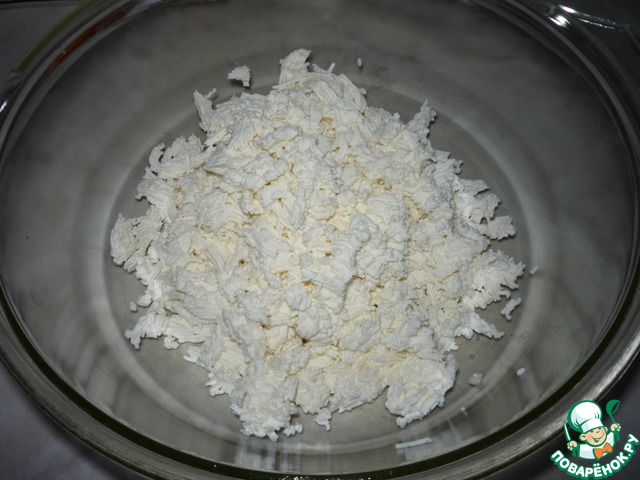 - Творог (у меня был 5% жирности) — 400 г