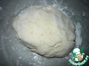 Тесто должно получится не сильно тугим, но и чтобы не липло к рукам. Тесто накрыть и дать ему постоять 15 мин.