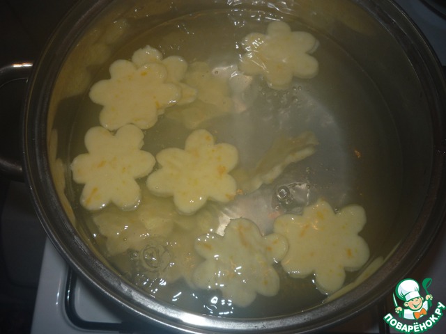 Отваривать наши "цветы" в подсоленной воде, пока не всплывут.