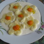 На улице стояла промозглая погода, а мне захотелось приготовить, для себя любимой, чего-то легкого, нежного и напоминающего о лете. И вот я нашла в интернете этот рецепт. Приготовила. Не разочаровалась. Особенно мне понравился сметанно-апельсиновый соус...